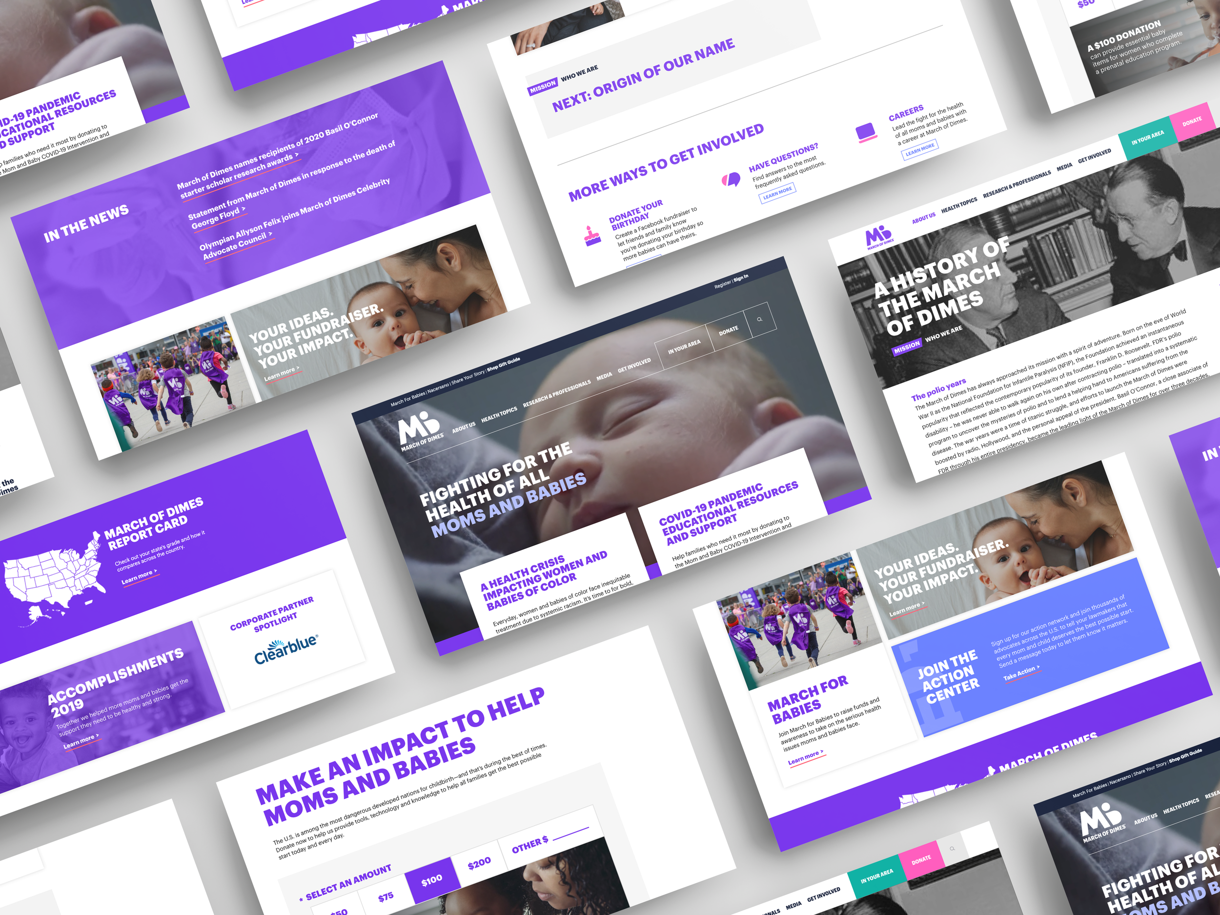 This first phase of an update for marchofdimes.org, including the homepage, navigation, article page template, and donation page, is designed to address the needs of an evolving organization in a changing digital landscape. Employing new features such as a video masthead helps to bring the mission of March of Dimes front and center, and updating the design of the article and donation pages creates a sense of professionalism and security appropriate to the impact of March of Dimes. Utilizing the latest web design and prototyping software enabled a smooth review and handoff process with both stakeholders and developers.